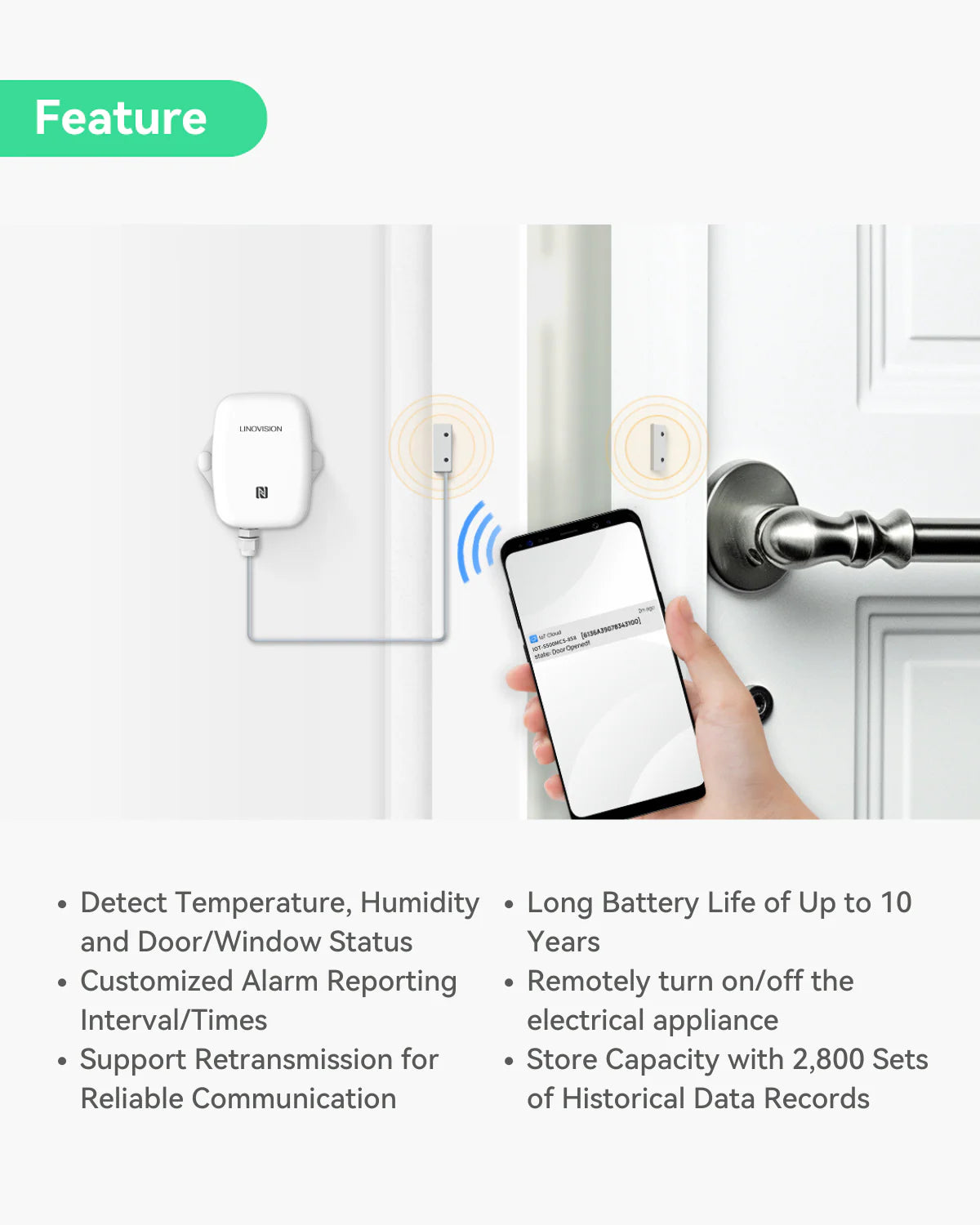 LoRaWAN Wireless Magnetic Door Contact Sensor with Temperature & Humidity Measurement