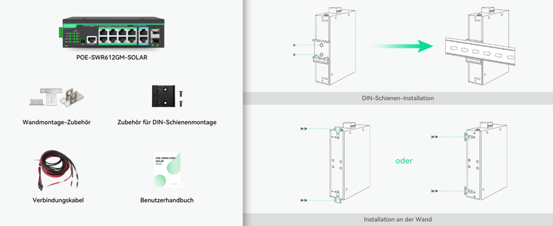 - Wohnmobil/Fahrzeug/LKW/Bussystem (DC12V-Eingang), wo POE-Anschlüsse benötigt werden