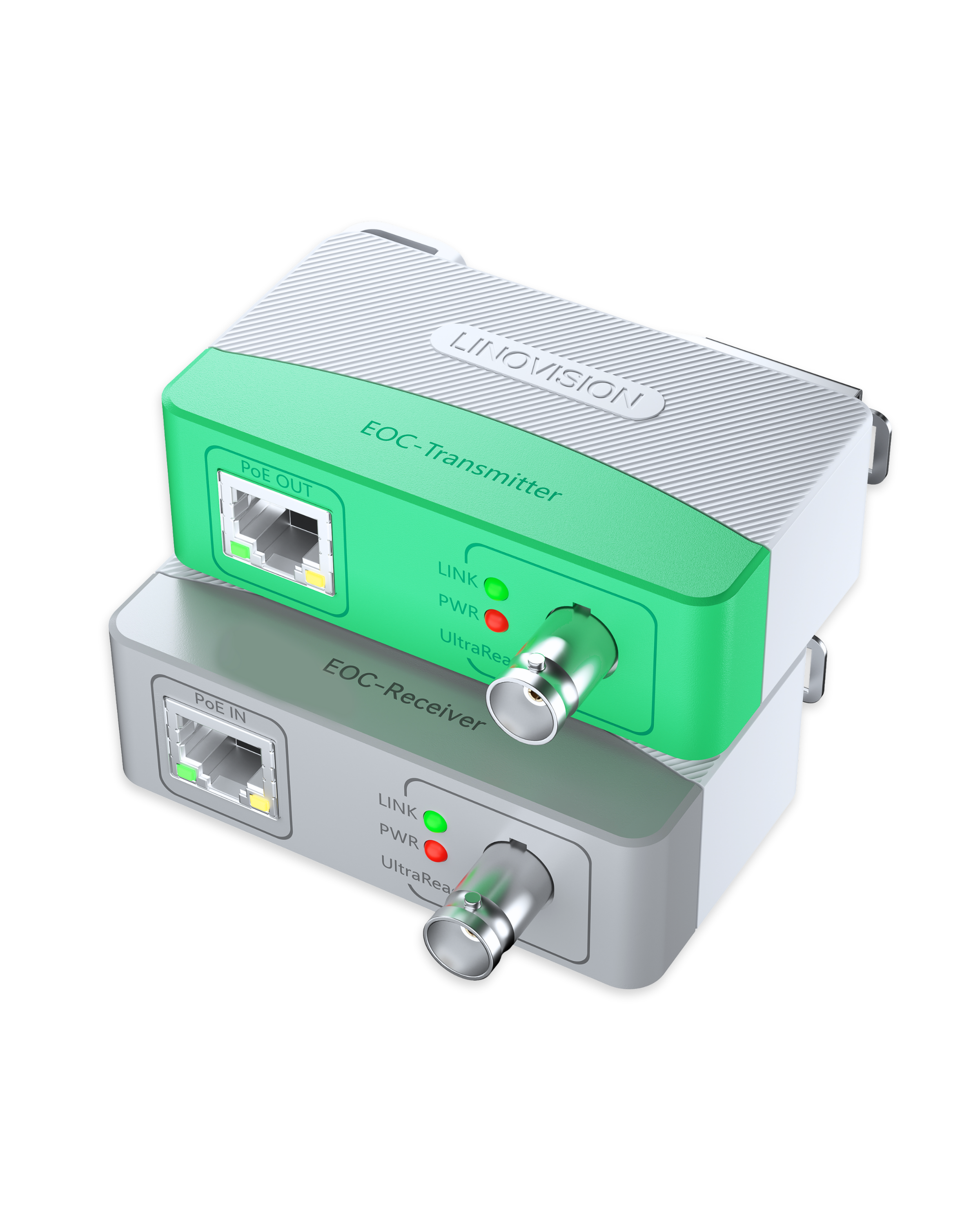 Linovision EOC Konverter ist eine Kombination aus Power over Coax (PoC) und Ethernet over Coax (EOC) Konverter. Mit der firmeneigenen ePOE-Technologie ist er so konzipiert, dass er sowohl PoE-Strom als auch Ethernet-Daten über Koaxialkabel oder Twisted-Pair-Kabel, einschließlich Siamese-Kabel, CATV-Kabel, Stromkabel, Cat5E/Cat6 usw. übertragen kann. Die maximale Übertragungsdistanz beträgt 3.300ft. Es ist sehr nützlich, um ein analoges Kamerasystem zu einem IP-Überwachungssystem aufzurüsten, ohne die alten Koaxialkabel ersetzen zu müssen. Es kann auch in Aufzügen verwendet werden, um Strom und Netzwerk über Koaxial- oder Twisted-Pair-Kabel zu erhalten.