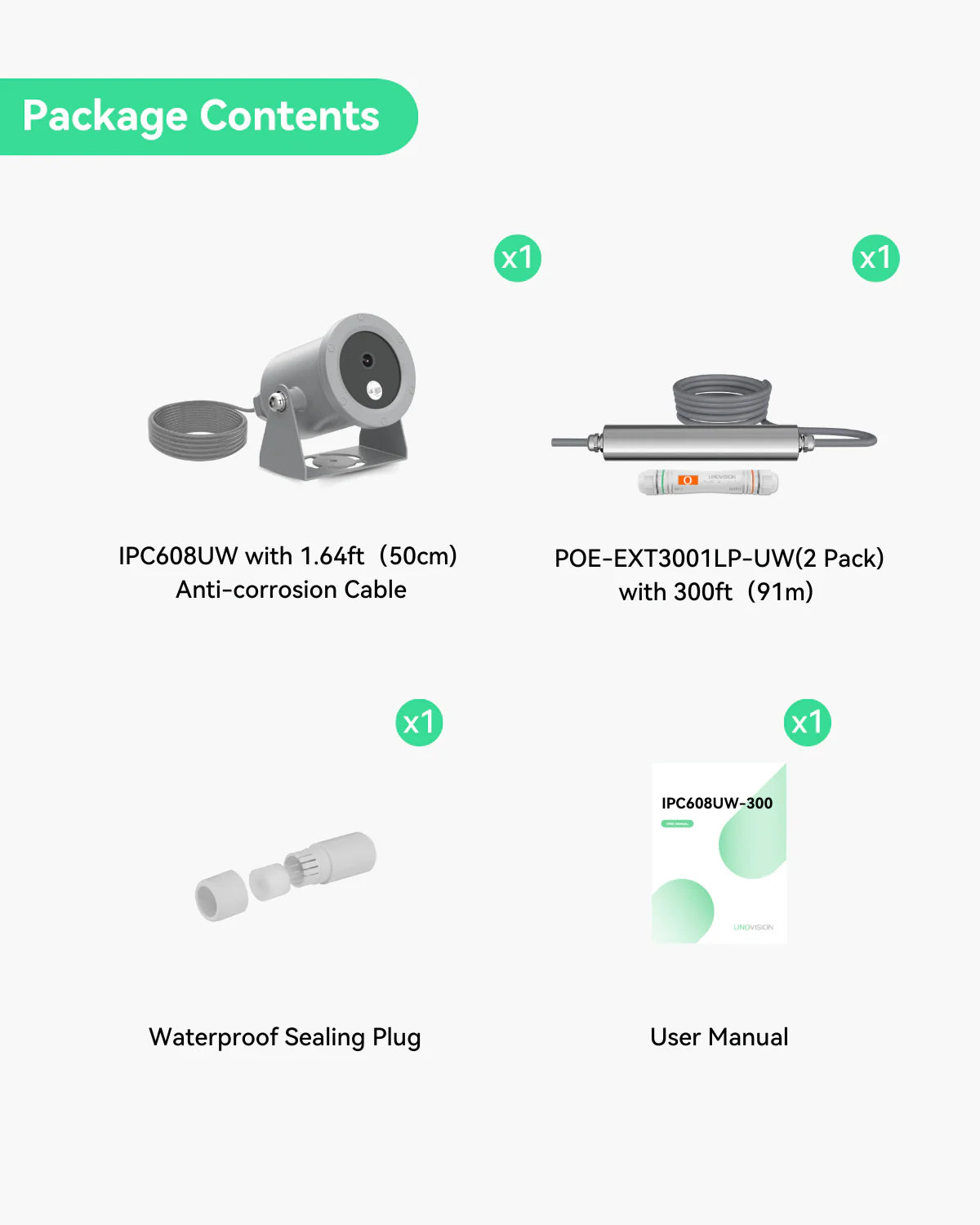 up to 50 meters (165 feet) of fresh or saltwater resistance for long-term underwater deployment |