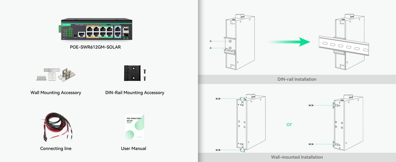 - Offer standard POE supply in solar power system (DC12V/DC18V/DC36V input)