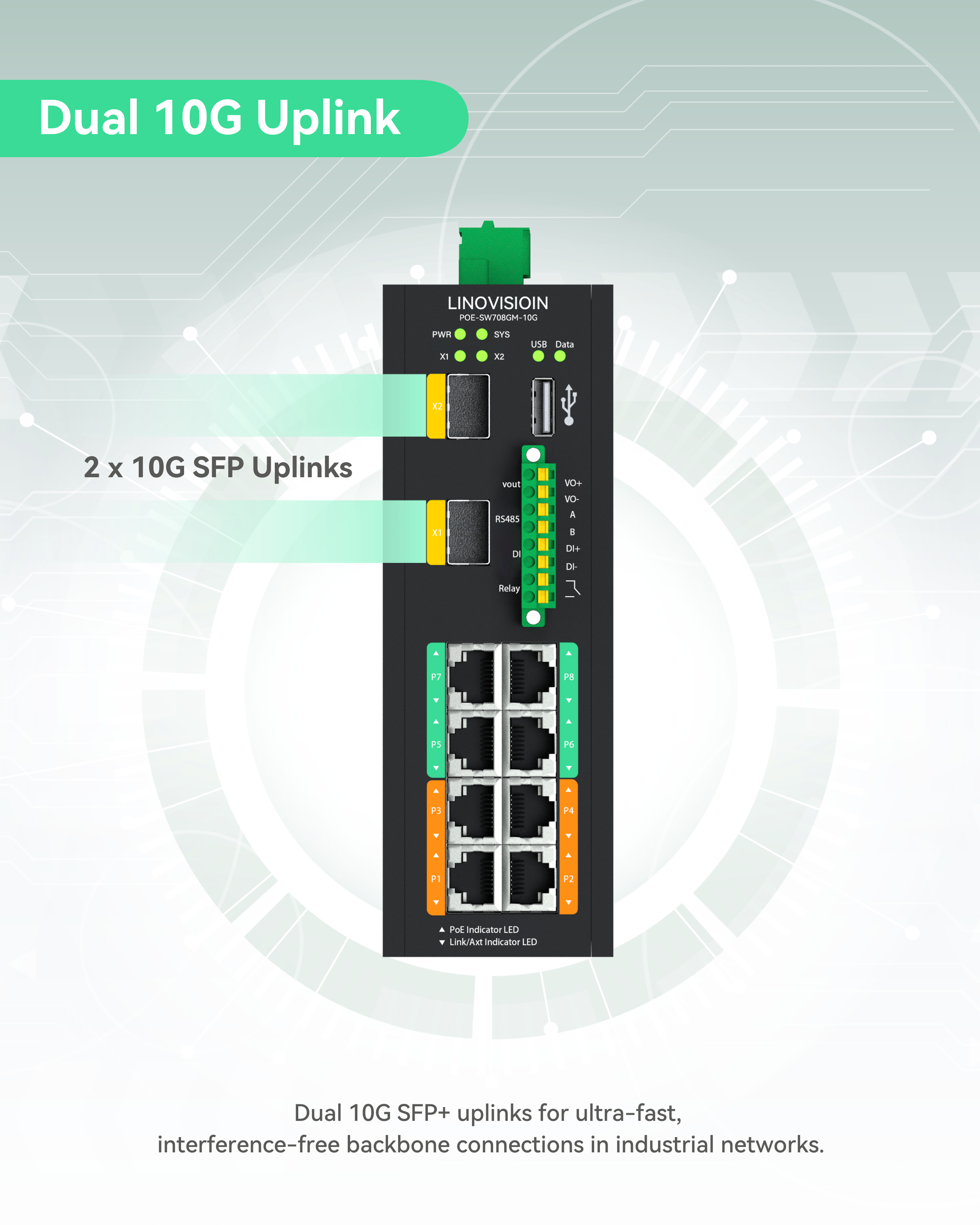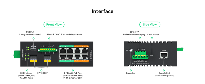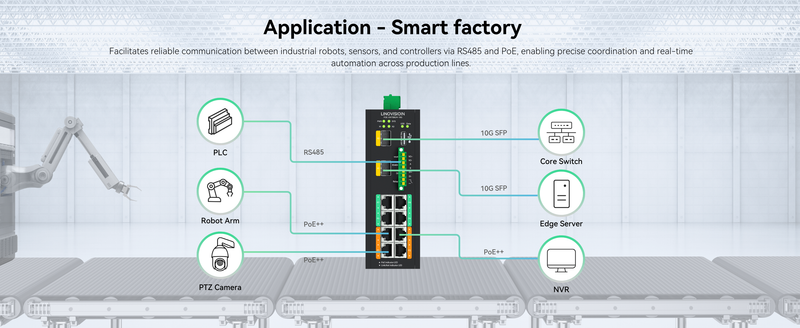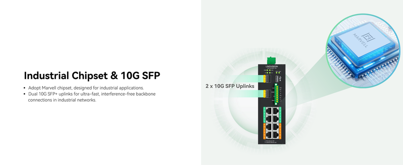 Dual 10G SFP Uplinks - Suitable for data-intensive applications, such as AI inspection, high-resolution video, and industrial backbone networking.