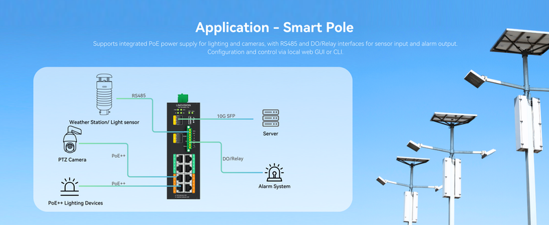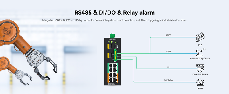 Designed for Robotics and Industrial Automation - Delivers ultra-low-latency PoE and precise data scheduling for robotic arms, AGVs, and AI-based inspection units. DI/DO event linkage and hardware QoS support real-time control and deterministic performance.