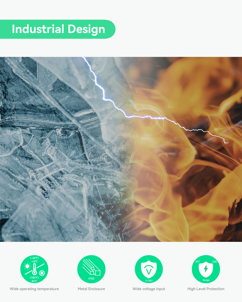 - INDUSTRIAL-GRADE DESIGN - Wall and rail mountable, IP30 protection, wide operating temperature from -40°F to 185°F.
